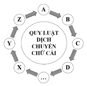 Trong hoạt động Hội trại kỷ niệm tháng Thanh niên, Đoàn trường tổ chức trò chơi lớn đó là "Giải mã mật thư". Bạn Nam nhận được một mật thư từ ban tổ chức với nội dung là một xâu kí tự đã được mã hóa theo quy luật. Xâu kí tự này gồm các cặp theo thứ tự kí tự chữ cái tiếng Anh viết hoa và kí tự số liên tiếp nhau, mật thư được giải mã theo quy luật dịch chuyển vòng tròn chữ cái được mô tả như hình sau: